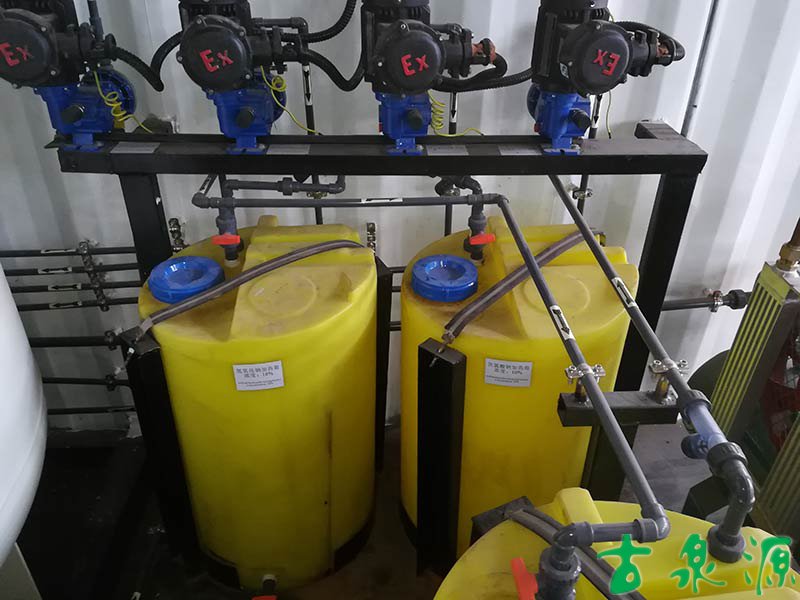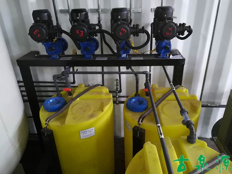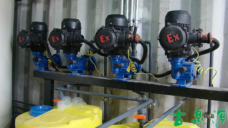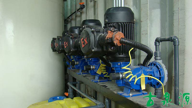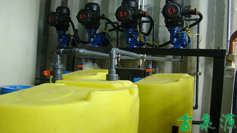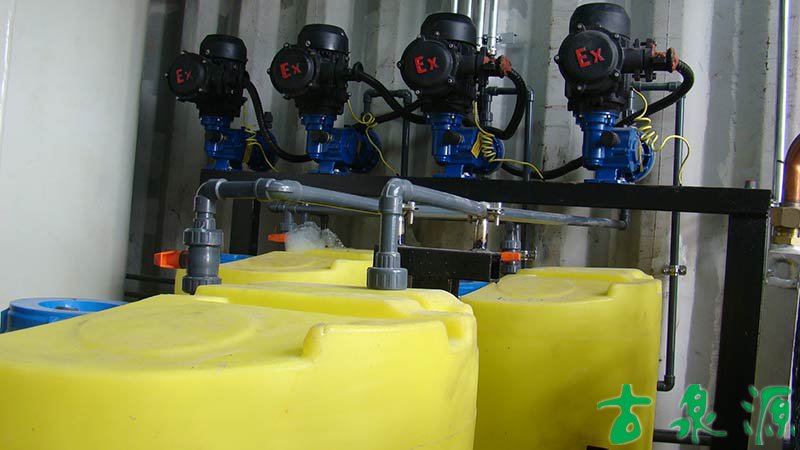 加藥系統(dosing system)主要由溶液箱、攪拌箱(帶攪拌器)、計量泵、液位計、電控柜、管路、閥門、安全閥、止回閥、壓力表、過濾器、底座、扶梯等組成(可根據用戶實際要求配置)。加藥系統根據所需藥劑濃度,在攪拌箱內配制,經攪拌器攪拌均勻后投入溶液箱、用計量泵(加藥泵)向投藥點或指定的系統中輸送所配制的溶液。