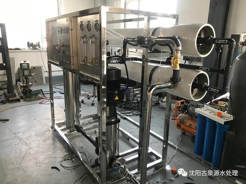 反滲透是最精密的膜法液體分離技術,在進水(濃溶液)側施加操作壓力以克服自然滲透壓,當高于自然滲透壓的操作壓力離加于濃溶液側時水分子自然滲透的流動方向就會逆轉,進水(濃溶液)中的水分子部份通過反滲透膜成為稀溶液側的凈化產水;反滲透設備能阻擋所有溶解性鹽及分子量大于100的有機物,但允許水分子透過,反滲透復合膜脫鹽率一般大于98%,它們廣泛用于工業純水及電子超純水制備,飲用純凈水生產,鍋爐給水等過程,在離子交換前使用反滲透設備可大幅度降底操作用水和廢水的排放量。